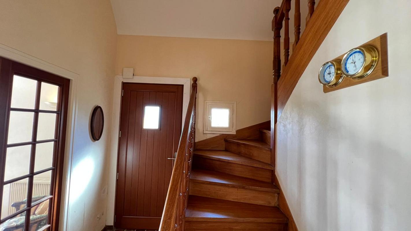 La maison se compose, au rez-de-chaussée, d’une entrée, d’un séjour salon avec cheminée, d’une cuisine aménagée, d’une chambre, d’une salle de bains et de WC, proposant une organisation fonctionnelle et appréciée des acquéreurs, notamment pour une vie de plain-pied partielle.