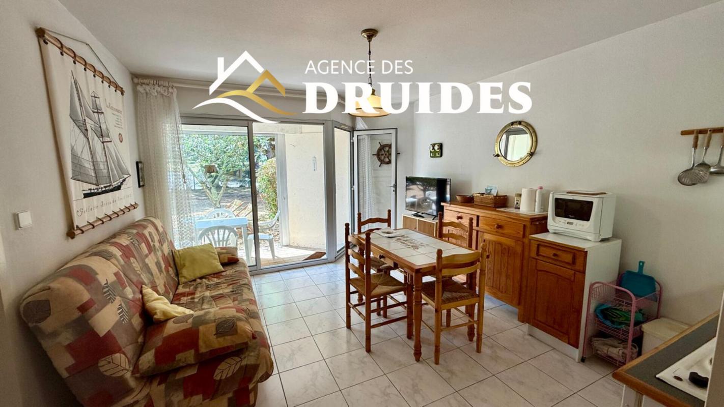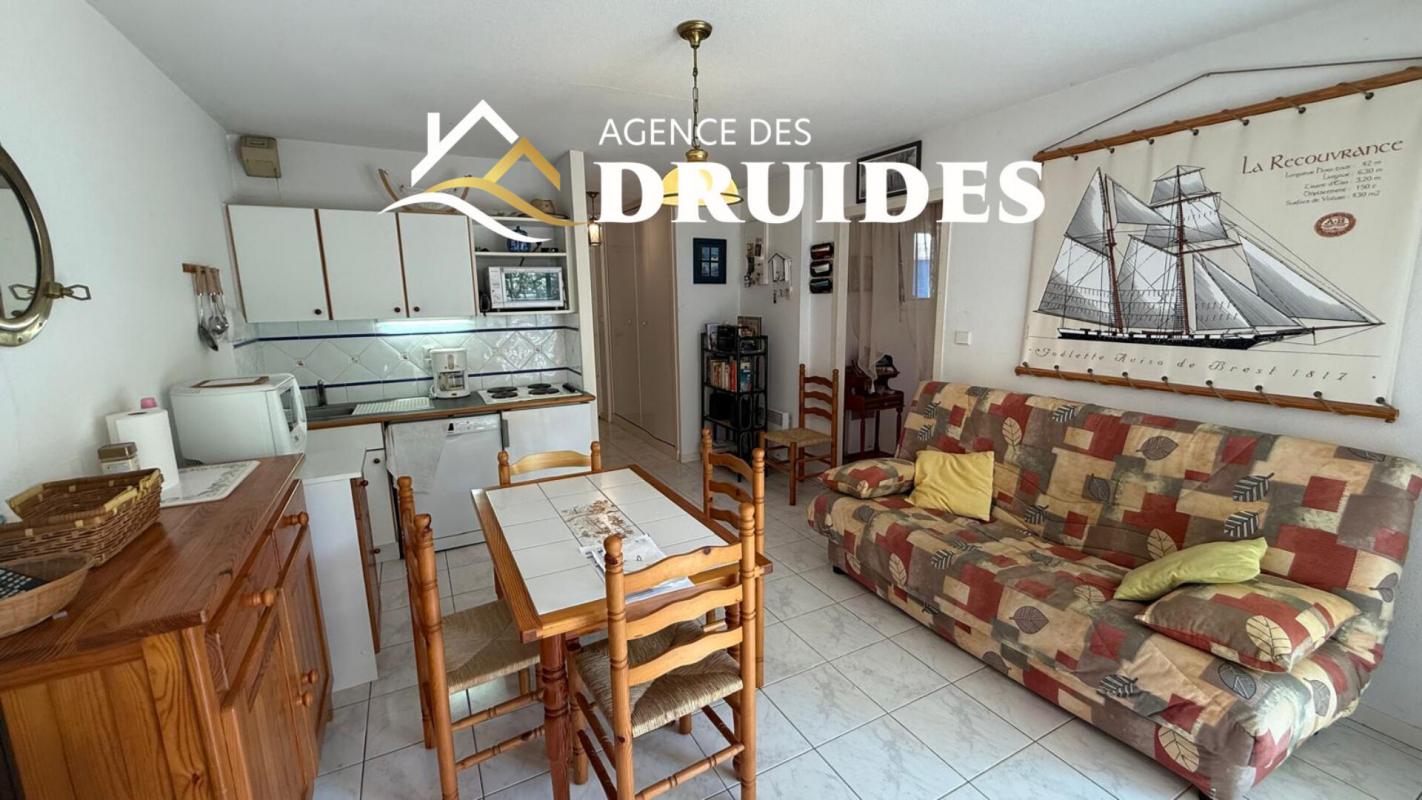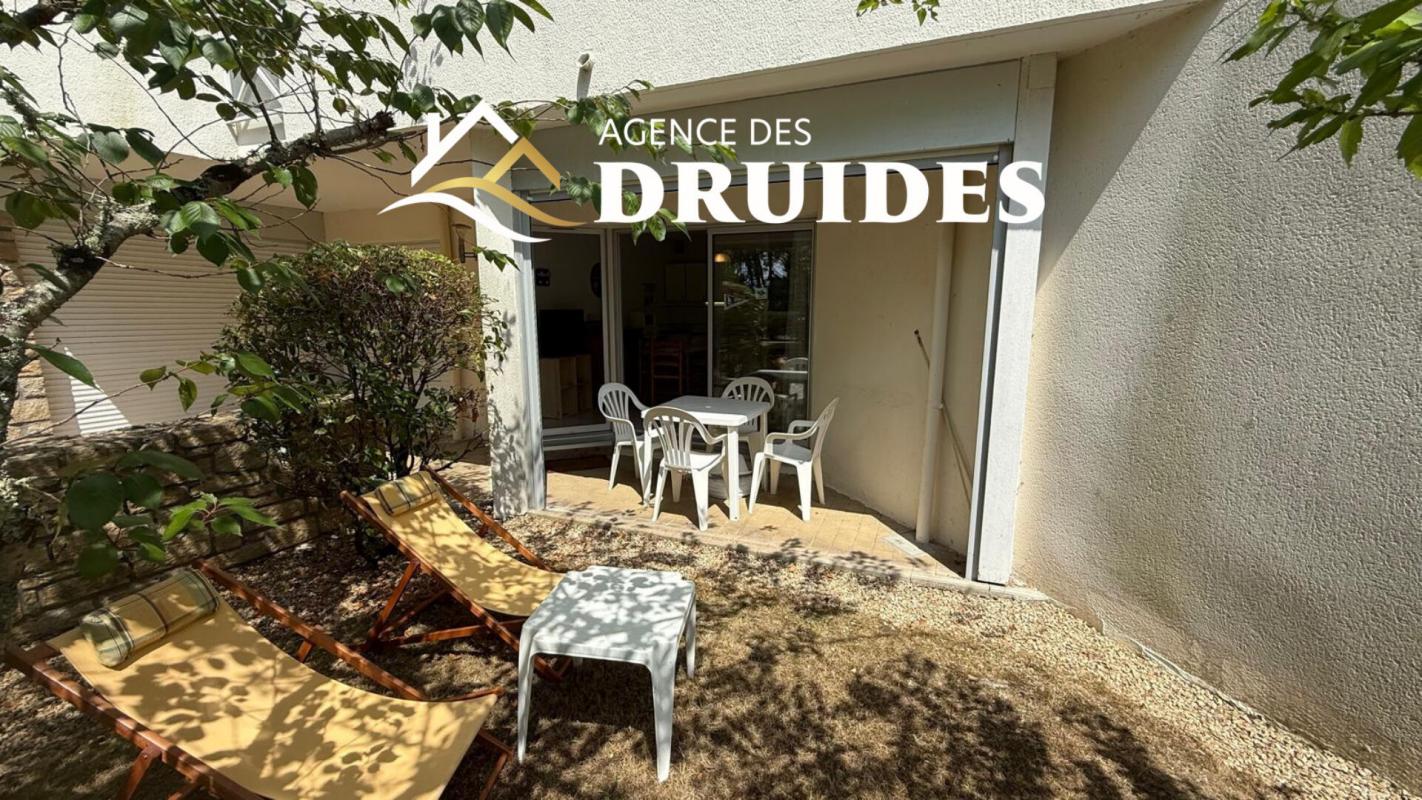 CARNAC, dans une résidence au calme, plage Legenese, yacht club et commerces à pieds pour ce joli 2 pièces en rez-de-chaussée. Il se compose d’une entrée, un séjour cuisine donnant sur une terrasse de 4.10m², un chambre cabine, une salle d’eau et un WC.
