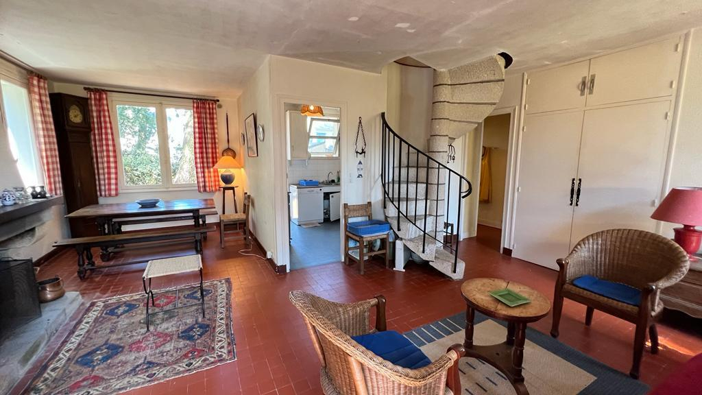 Construite selon des méthodes traditionnelles (pierres, parpaings, briques), la maison offre une base saine et un fort potentiel de valorisation, notamment grâce à un CES de 30 %, ouvrant la voie à un projet d’extension ou de réinterprétation contemporaine.